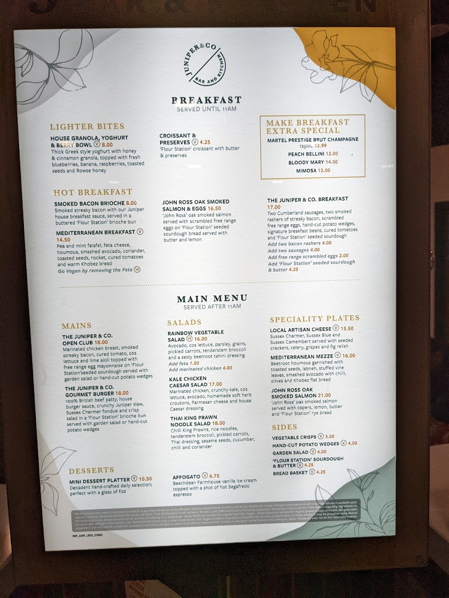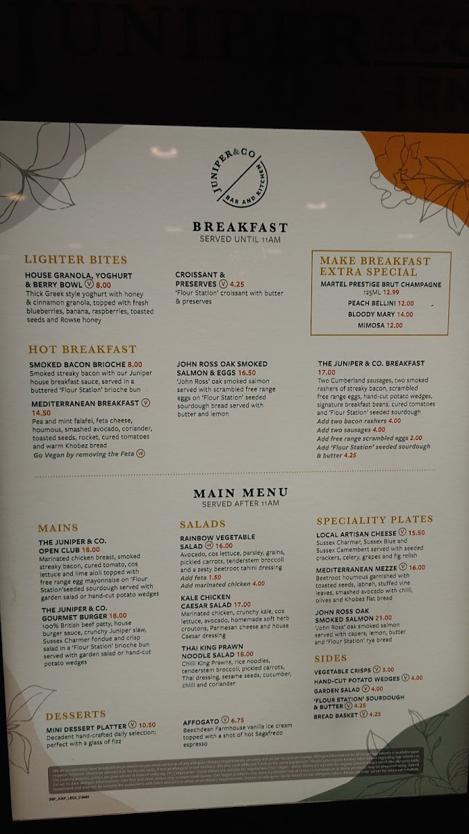 Welcome to the culinary retreat that is Juniper & Co, nestled in the North Terminal of Gatwick Airport. This enchanting eatery offers travelers a moment of respite, infusing the often frenetic pace of airport dining with a touch of sophistication. From the moment you step inside, the ambiance whispers relaxation, making it a perfect stop before your journey begins.